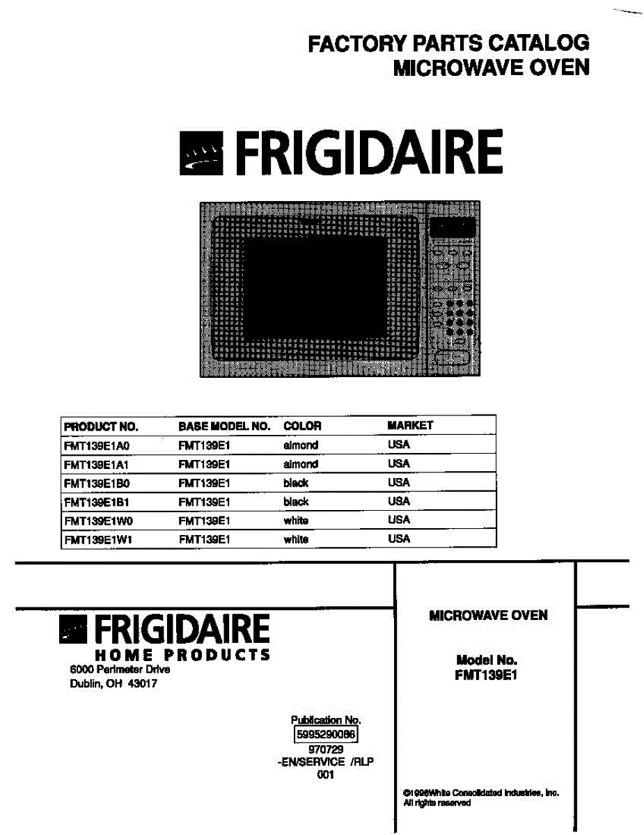 Parts for Frigidaire FMT139E1B0: 01 - Cover Parts