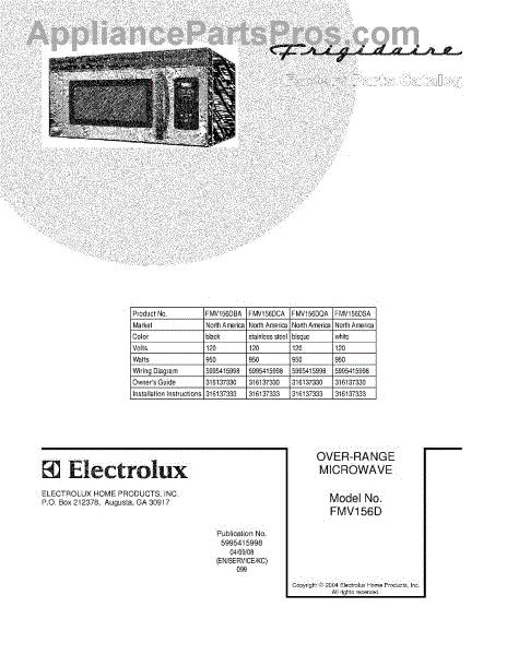 Parts for Frigidaire FMV156DBA: 01 - Cover Parts
