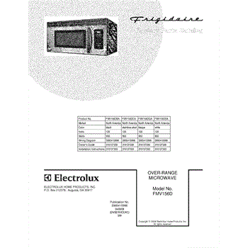 Parts for Frigidaire FMV156DSA: 01 - Cover Parts