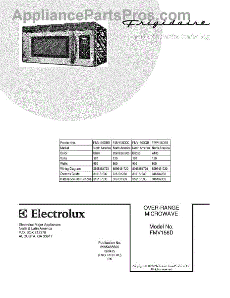 Parts for Frigidaire FMV156DSB: 01 - Cover Parts