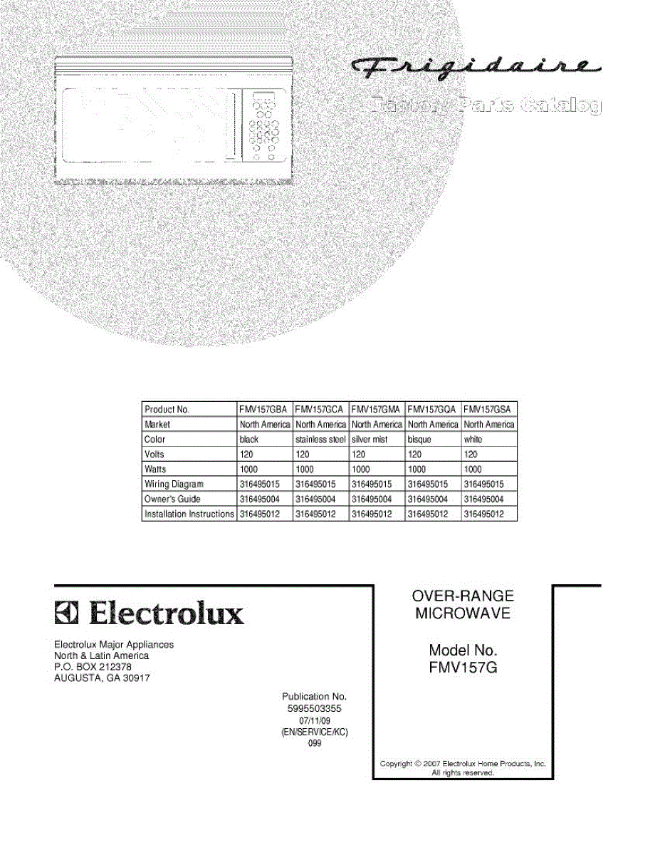 Parts for Frigidaire FMV157GCA: 01 - Cover Parts