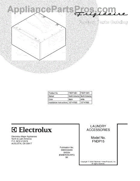 Parts for Frigidaire FNDP15W1: 01 - Cover Parts