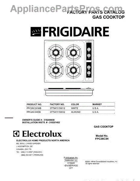Gascooktop Fpc26c3hw&Db Frigidaire