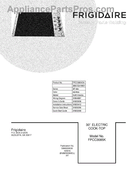 Parts for Frigidaire FPCC3085KSA: 01 - Cover Parts