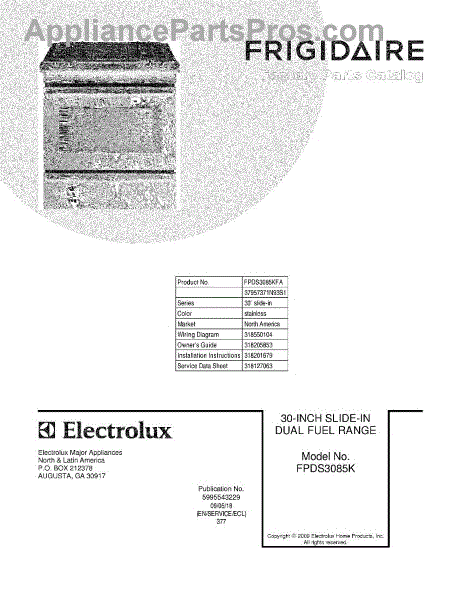 Parts for Frigidaire FPDS3085KFA: 01 - Cover Parts