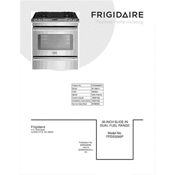 Parts for Frigidaire FPDS3085PFA: 01 - Cover Parts