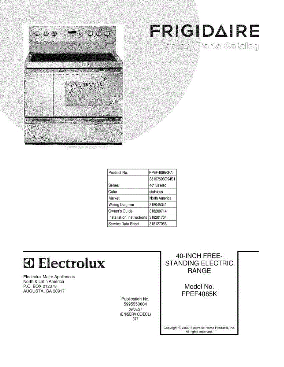 Parts for Frigidaire FPEF4085KFA: 01 - Cover Parts