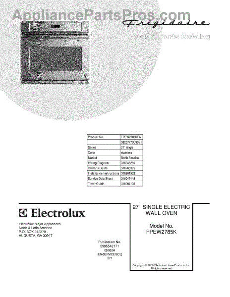 Parts for Frigidaire FPEW2785KFA: 01 - Cover Parts