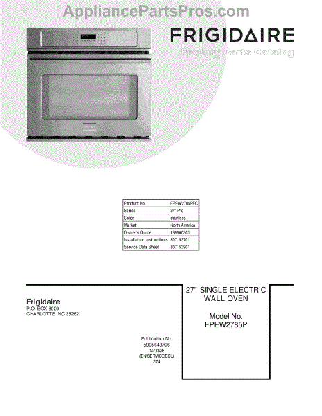 Parts for Frigidaire FPEW2785PFC: 01 - Cover Parts