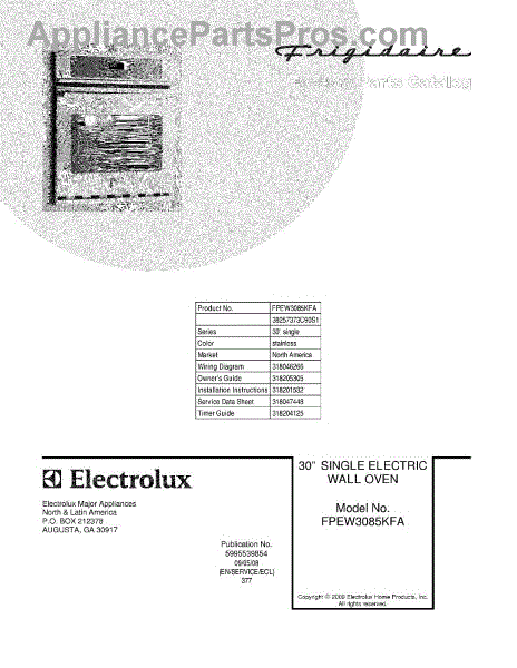 Parts for Frigidaire FPEW3085KFA: 01 - Cover Parts