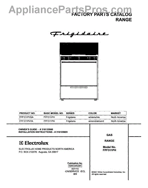 Parts for Frigidaire FPF311PHTA: 01 - Cover Parts