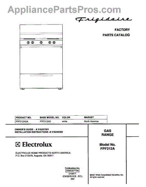 Parts for Frigidaire FPF312ASA: 01 - Cover Parts