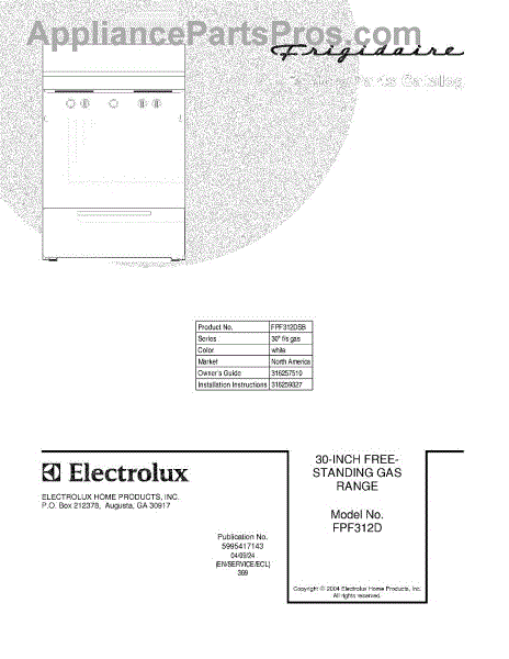 Parts for Frigidaire FPF312DSB: 01 - Cover Parts