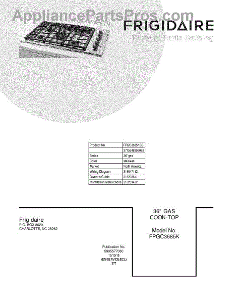 Parts for Frigidaire FPGC3685KSB: 01 - Cover Parts