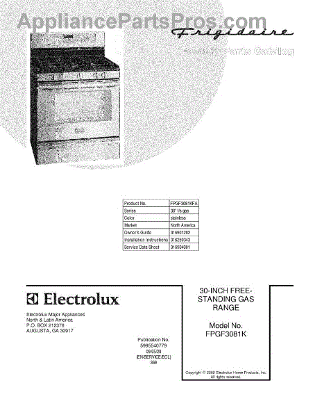 Parts for Frigidaire FPGF3081KFA: 01 - Cover Parts