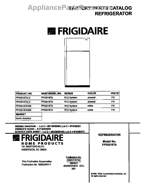 Parts for Frigidaire FPGS18TAW3: 01 - Cover Parts