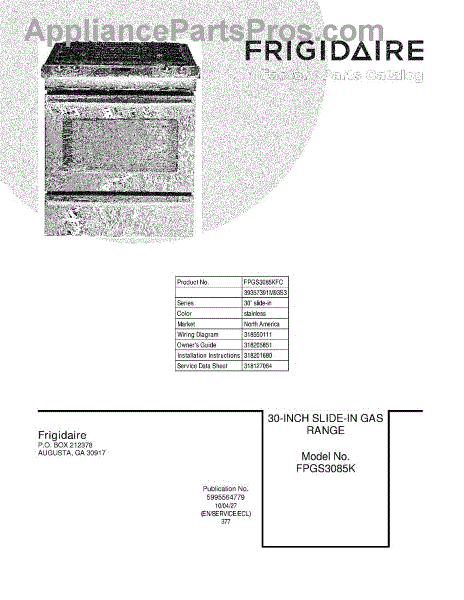 Parts for Frigidaire FPGS3085KFC: 01 - Cover Parts