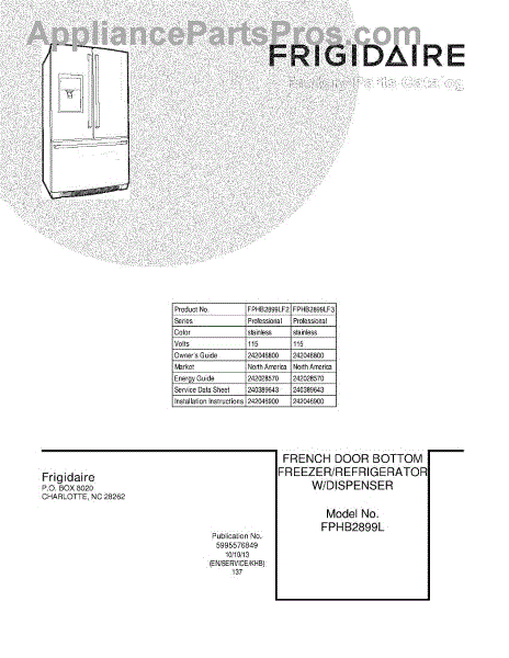Parts for Frigidaire FPHB2899LF3: 01 - Cover Parts