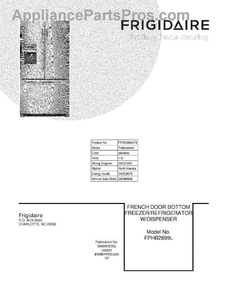 Parts for Frigidaire FPHB2899LF8: 01 - Cover Parts