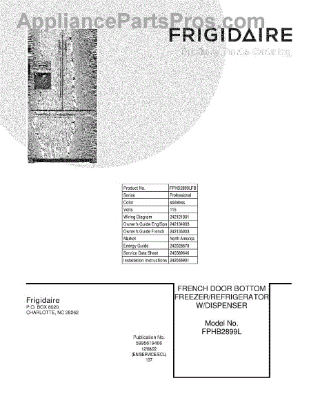 Parts for Frigidaire FPHB2899LFB: 01 - Cover Parts