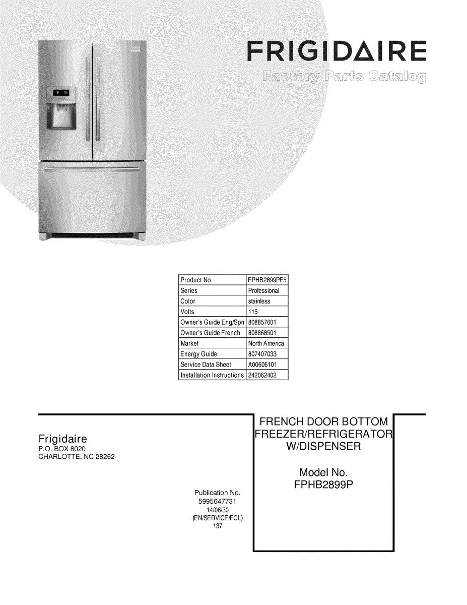 Parts for Frigidaire FPHB2899PF5: 01 - Cover Parts