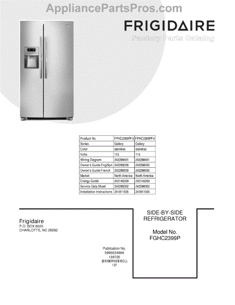 Parts for Frigidaire FPHC2399PF3: 01 - Cover Parts