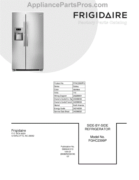 Parts for Frigidaire FPHC2399PF5: 01 - Cover Parts