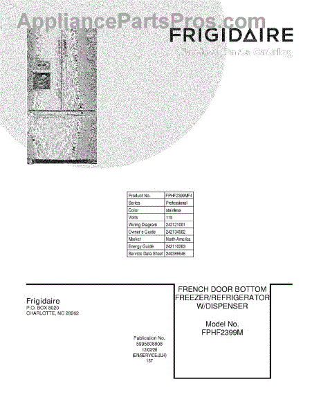 Parts for Frigidaire FPHF2399MF4: 01 - Cover Parts
