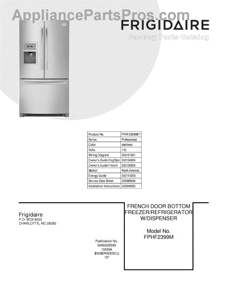 Parts for Frigidaire FPHF2399MF7: 01 - Cover Parts