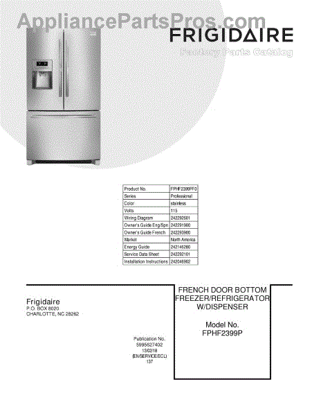Parts for Frigidaire FPHF2399PF0: 01 - Cover Parts