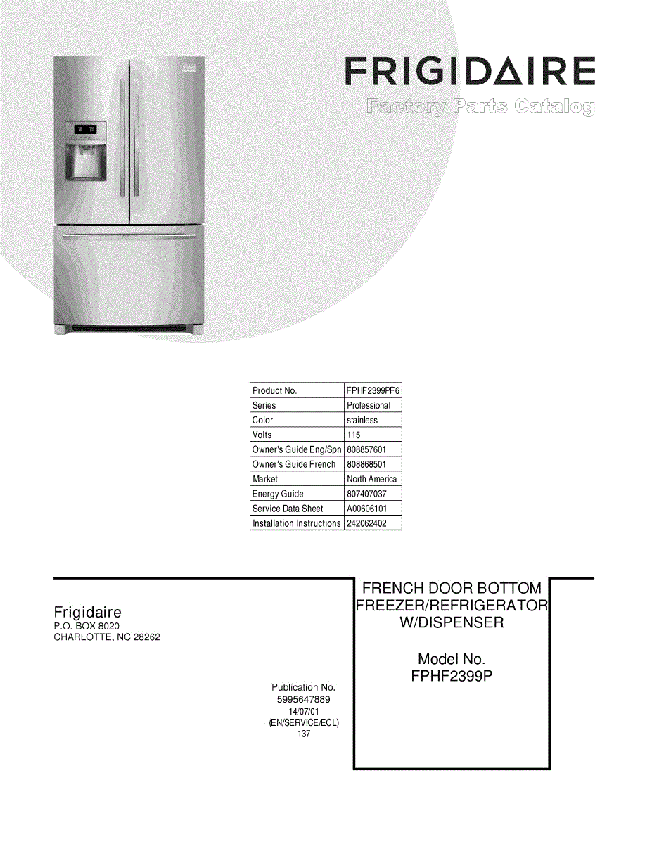 Parts for Frigidaire FPHF2399PF6: 01 - Cover Parts