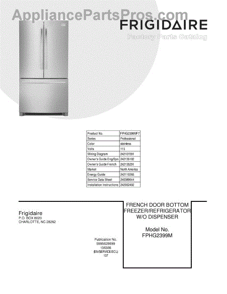 Parts for Frigidaire FPHG2399MF7: 01 - Cover Parts