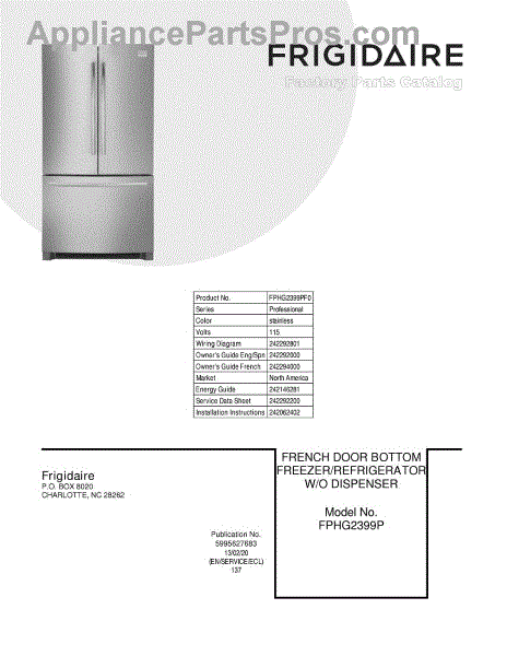 Parts for Frigidaire FPHG2399PF0: 01 - Cover Parts