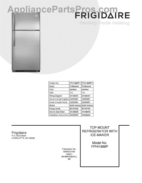 Parts for Frigidaire FPHI1888PF2: 01 - Cover Parts