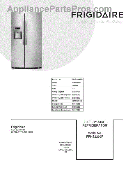 Parts for Frigidaire FPHS2399PF0: 01 - Cover Parts