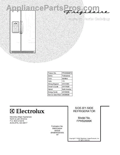 Parts for Frigidaire FPHS2699KF0: 01 - Cover Parts