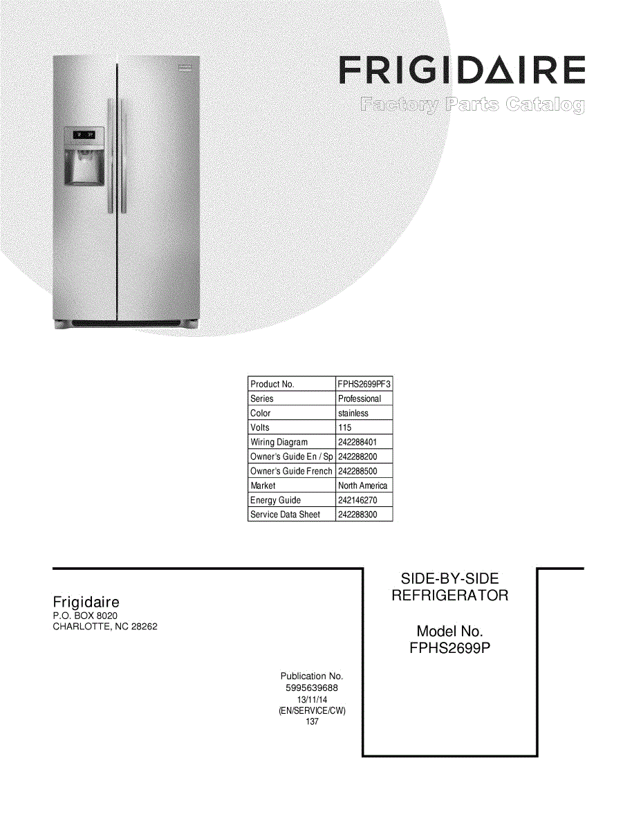 Parts for Frigidaire FPHS2699PF3: 01 - Cover Parts