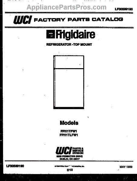 Parts for Frigidaire FPI11TFH1: 01 - Cover Parts