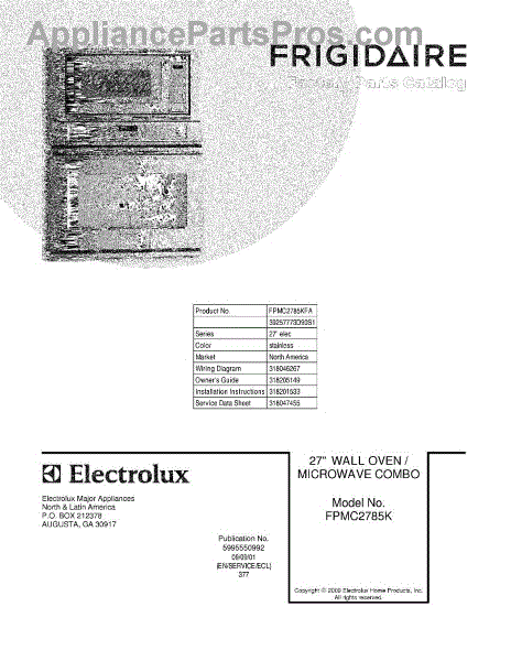 Parts for Frigidaire FPMC2785KFA: 01 - Cover Parts