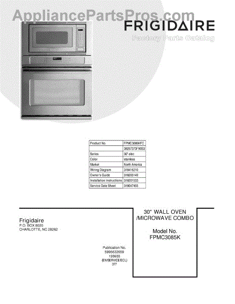 Parts for Frigidaire FPMC3085KFC: 01 - Cover Parts