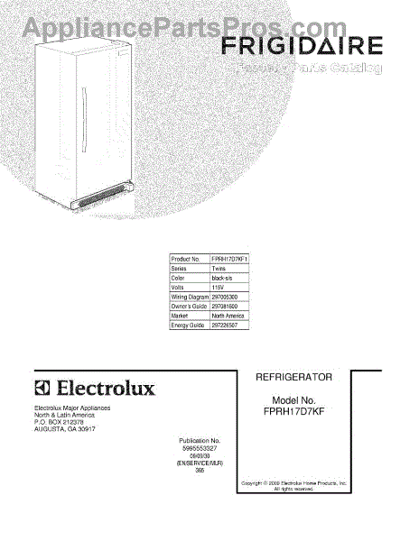 Parts for Frigidaire FPRH17D7KF1: 01 - Cover Parts