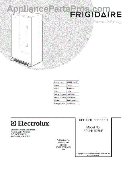 Parts for Frigidaire FPUH17D7KF1: 01 - Cover Parts