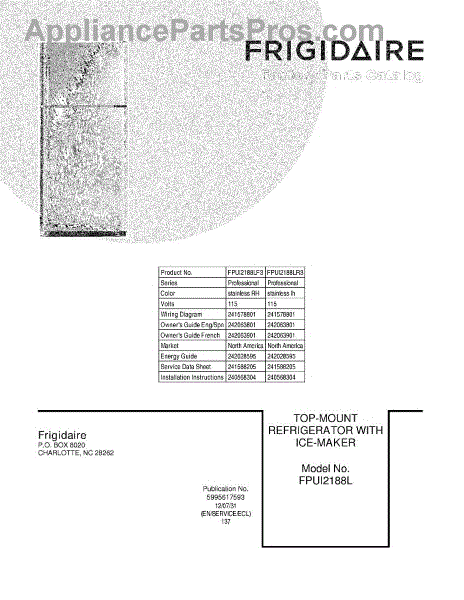 Parts for Frigidaire FPUI2188LR3: 01 - Cover Parts