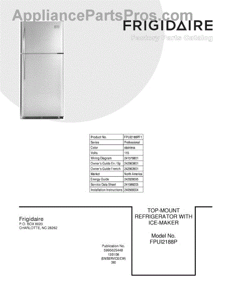 Parts for Frigidaire FPUI2188PF1: 01 - Cover Parts