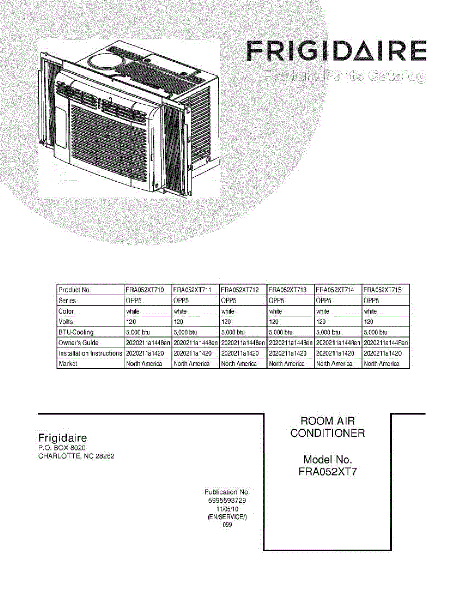 Parts for Frigidaire FRA052XT710: 01 - Cover Parts