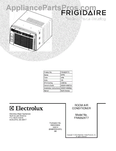 Parts for Frigidaire FRA052XT75: 01 - Cover Parts