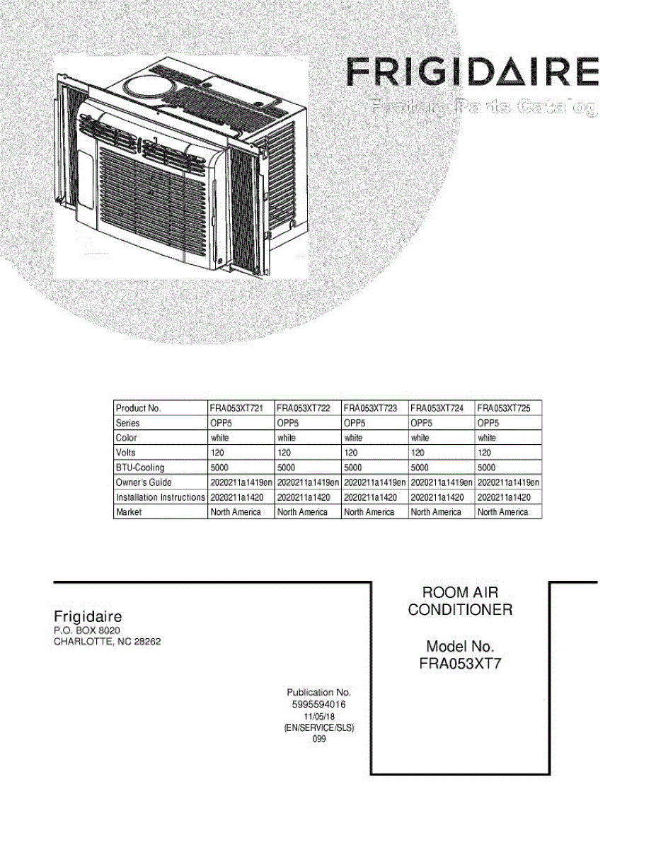 Parts for Frigidaire FRA053XT722: 01 - Cover Parts