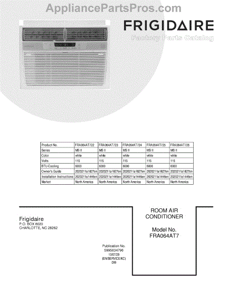 Parts for Frigidaire FRA064AT725: 01 - Cover Parts