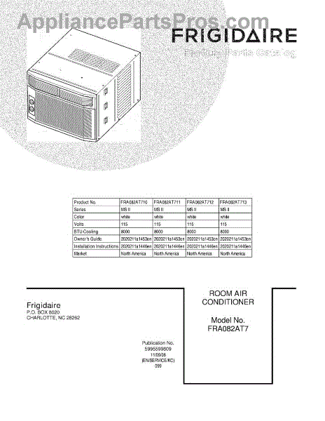 Parts for Frigidaire FRA082AT712: 01 - Cover Parts