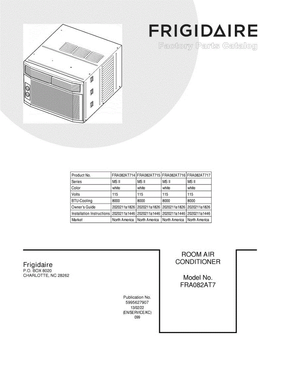Parts for Frigidaire FRA082AT716: 01 - Cover Parts